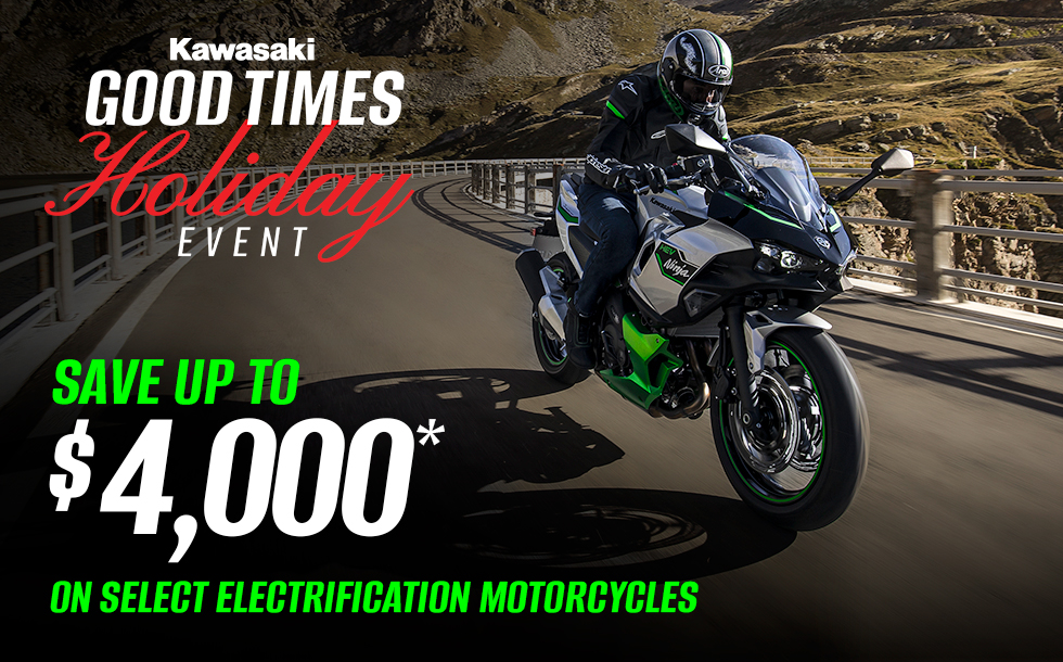 *Model & year exclusions apply. May be combined with promotional retail financing rates. Incentives are available at participating Kawasaki dealerships. Offer valid through 12/31/2025. Subject to change without notice. Offer available on approved purchases of select new unregistered Kawasaki vehicles.